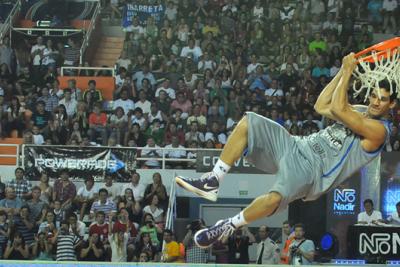 En el torneo de volcadas, el juego más vistoso de todos, el pívot de Quilmes, Tayavek Gallizzi, defenderá el título obtenido en 2014 ante las caras que llegan a desafiarlo: el ala-pívot de Obras, Ramón Clemente; el escolta de Sionista, Carlos Buemo; el extranjero de San Martín, Jeremy Wood; y el escolta de Bahía Basket, Ayan Nuñéz Carvalho.